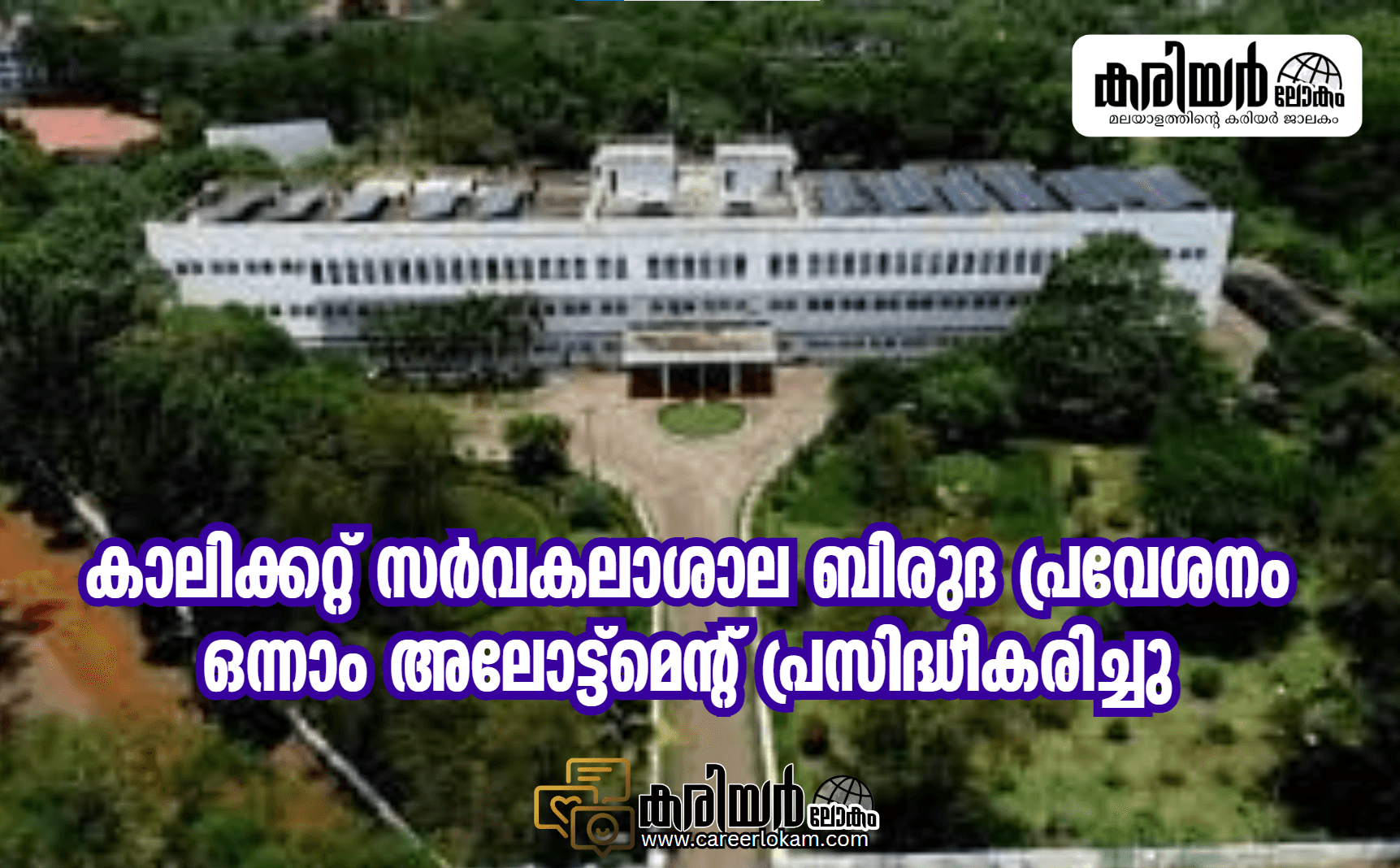 കാലിക്കറ്റ് സർവകലാശാലയുടെ 2024-25 വർഷത്തേക്കുളള ബിരുദ പ്രവേശനത്തിന്റെ ഒന്നാമത്തെ അലോട്ട്മെന്റ് പ്രസിദ്ധീകരിച്ചു.