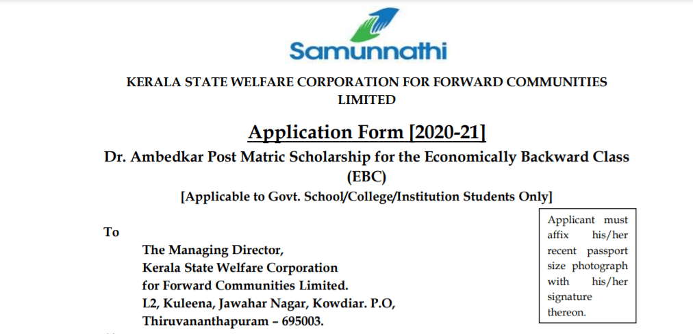 സമുന്നതി : സാമ്പത്തികമായി പിന്നാക്കം നിൽക്കുന്ന മുന്നാക്ക സമുദായത്തിലെ വിദ്യാർത്ഥികൾക്ക് ഡോ. അംബേദ്കർ പോസ്റ്റ്-മെട്രിക് സ്കോളർഷിപ്പ്