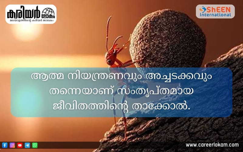 ആത്മ നിയന്ത്രണവും അച്ചടക്കവും തന്നെയാണ് സംതൃപ്തമായ ജീവിതത്തിന്റെ താക്കോൽ.