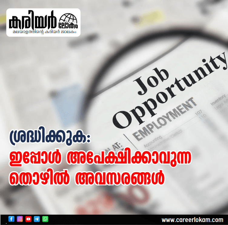 ശ്രദ്ധിക്കുക :ഇപ്പോൾ അപേക്ഷിക്കാവുന്ന തൊഴിൽ അവസരങ്ങൾ