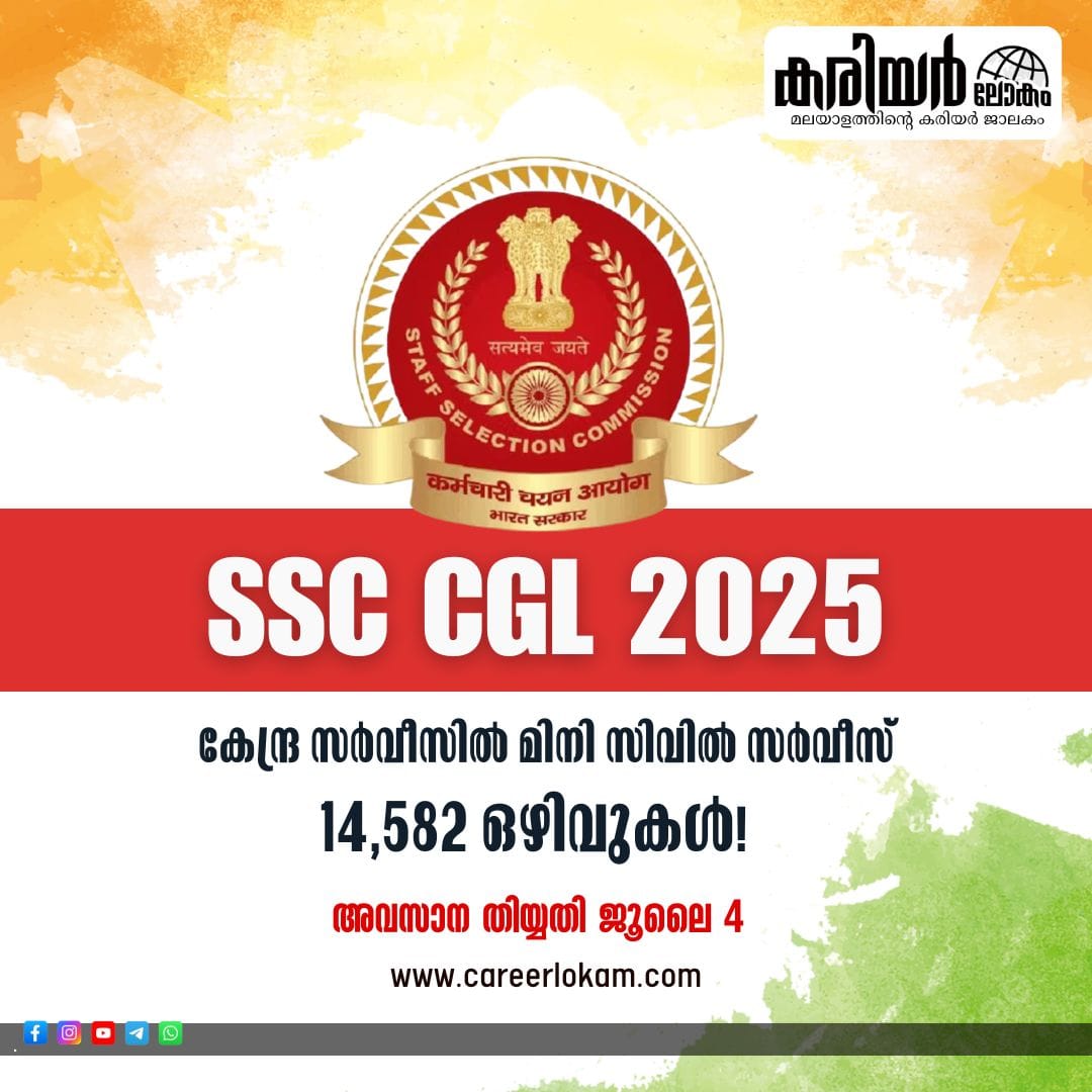 കേന്ദ്ര സർവീസിൽ മിനി സിവിൽ സർവീസ്: SSC CGL വഴി 14,582 ഒഴിവുകൾ! ജൂലൈ 4 വരെ അപേക്ഷിക്കാം!