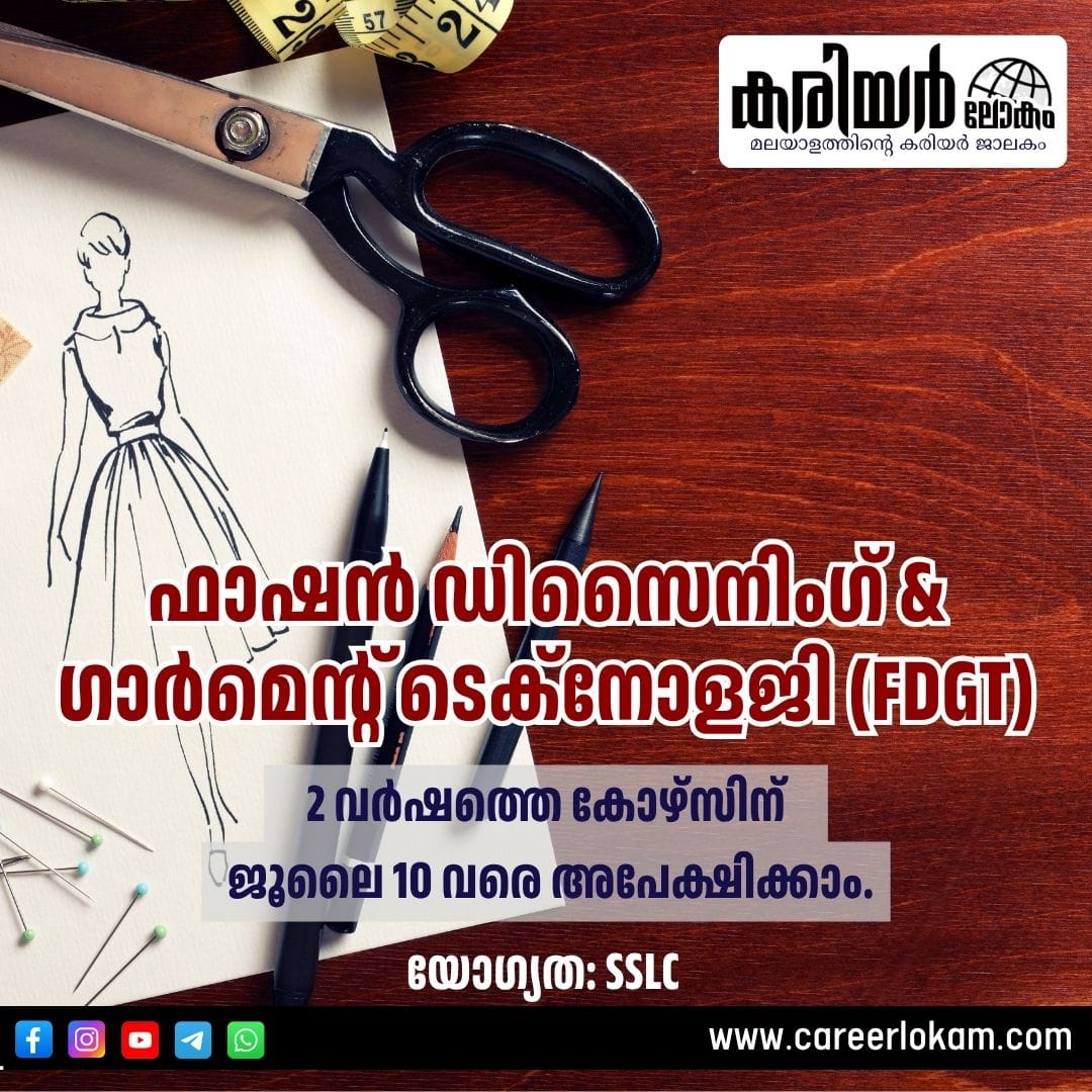 ഫാഷൻ ഡിസൈനിംഗ് ആൻഡ് ഗാർമെൻ്റ് ടെക്നോളജി (FDGT) കോഴ്സിന് അപേക്ഷിക്കാം
