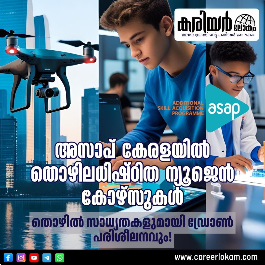 അസാപ് കേരളയിൽ തൊഴിലധിഷ്ഠിത ന്യൂജെൻ കോഴ്സുകൾ: തൊഴിൽ സാധ്യതകളുമായി ഡ്രോൺ പരിശീലനവും!