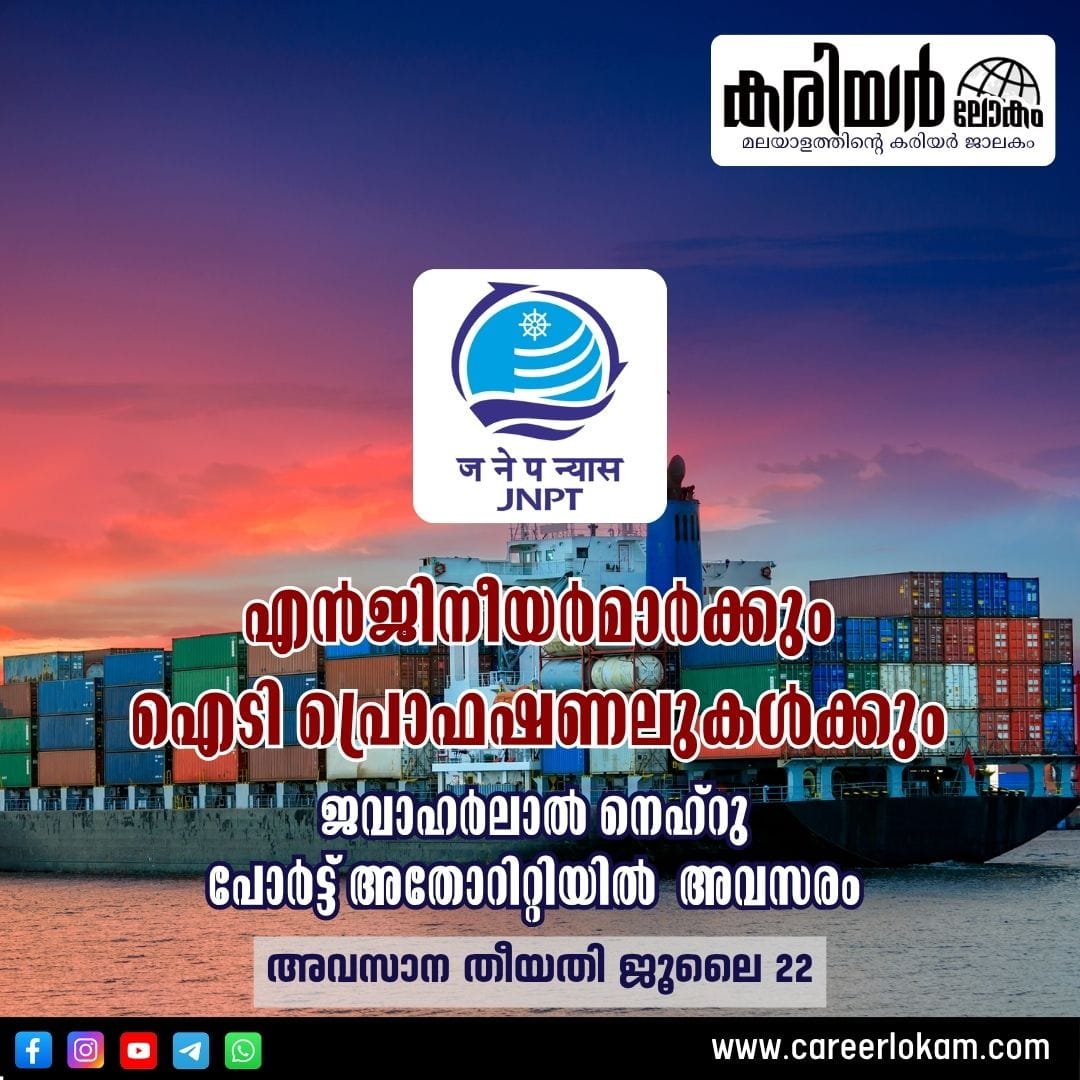 കൂടുതൽ വിവരങ്ങൾക്കും അപേക്ഷാ ഫോമിനും www.jnport.gov.in എന്ന വെബ്സൈറ്റ് സന്ദർശിക്കുക.