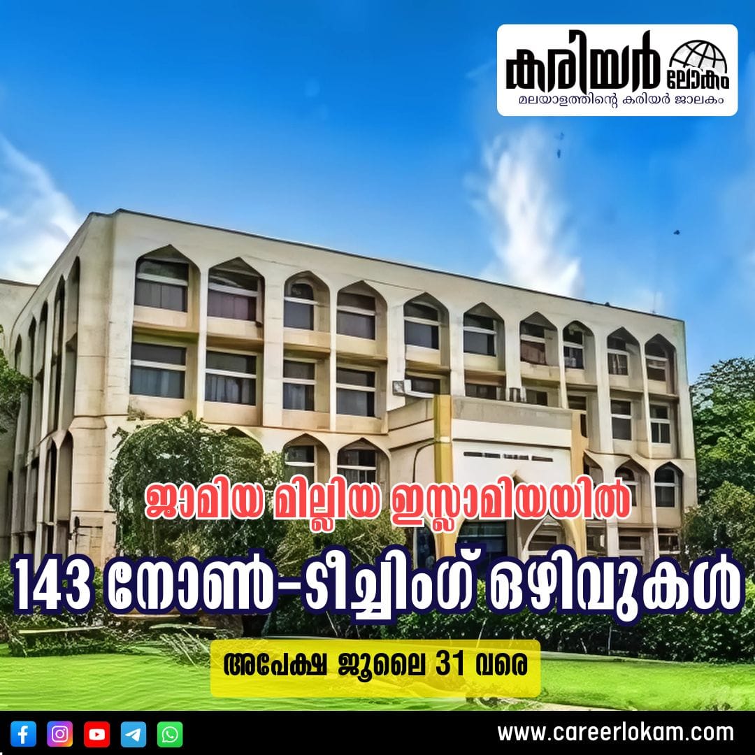 ജാമിയ മില്ലിയ ഇസ്ലാമിയയിൽ 143 നോൺ-ടീച്ചിംഗ് ഒഴിവുകൾ: അപേക്ഷ ജൂലൈ 31 വരെ