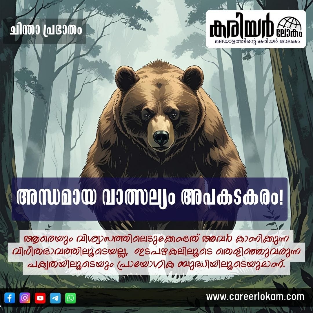 ചേർന്നുനിൽക്കുന്നവരെല്ലാം നല്ലവരായിരിക്കണമെന്നില്ല. അന്ധമായി വിശ്വസിക്കുന്ന ഒരാളും തങ്ങളാഗ്രഹിക്കുന്ന വേഗത്തിലും അർഹിക്കുന്ന മികവിലും സഞ്ചരിക്കില്ല. ആരെങ്കിലുമുയർത്തുന്ന പ്രതിബന്ധങ്ങളിൽത്തട്ടി പലതവണ വീഴും. ആരെയും വിശ്വാസത്തിലെടുക്കേണ്ടത് അവർ കാണിക്കുന്ന വിനീതഭാവത്തിലൂടെയല്ല, ഇടപഴകലിലൂടെ തെളിഞ്ഞുവരുന്ന പക്വതയിലൂടെയും പ്രായോഗിക ബുദ്ധിയിലൂടെയുമാണ്.