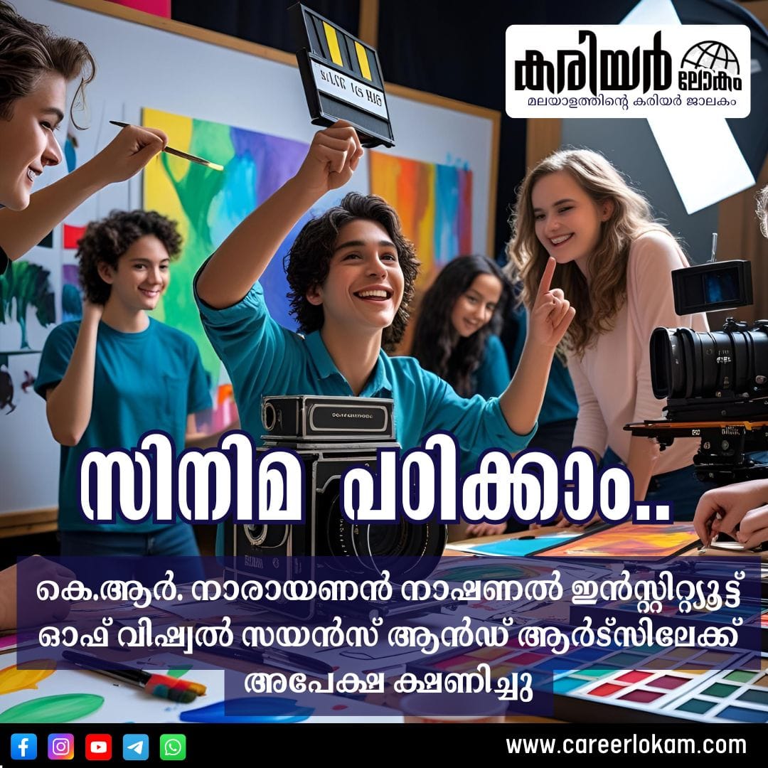 ഉന്നത വിദ്യാഭ്യാസ വകുപ്പിന് കീഴിലുള്ള കെ.ആർ. നാരായണൻ നാഷണൽ ഇൻസ്റ്റിറ്റ്യൂട്ട് ഓഫ് വിഷ്വൽ സയൻസ് ആൻഡ് ആർട്സ്, വിവിധ സിനിമാ പഠന വിഷയങ്ങളിൽ ബിരുദാനന്തര ഡിപ്ലോമ പ്രോഗ്രാമുകളിലേക്ക് അപേക്ഷ ക്ഷണിച്ചു. ചലച്ചിത്ര മേഖലയിൽ താൽപ്പര്യമുള്ളവർക്ക് ഇതൊരു മികച്ച അവസരമാണ്.