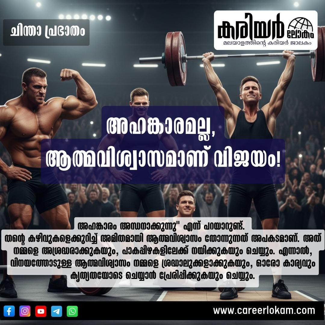 - ആത്മവിശ്വാസം വിജയത്തിലേക്ക്: വിനയത്തോടുകൂടിയുള്ള ആത്മവിശ്വാസമാണ് യഥാർത്ഥ വിജയം നേടാൻ സഹായിക്കുന്നത്.