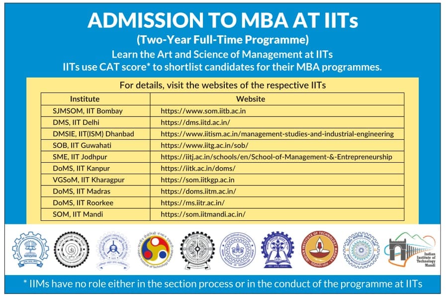 മാനേജ്മെന്റ് പഠനം IITകളിൽ: രണ്ട് വർഷത്തെ ഫുൾ ടൈം എം.ബി.എ; പ്രവേശനം CAT വഴി; 10 ഐ.ഐ.ടികളിൽ അവസരം