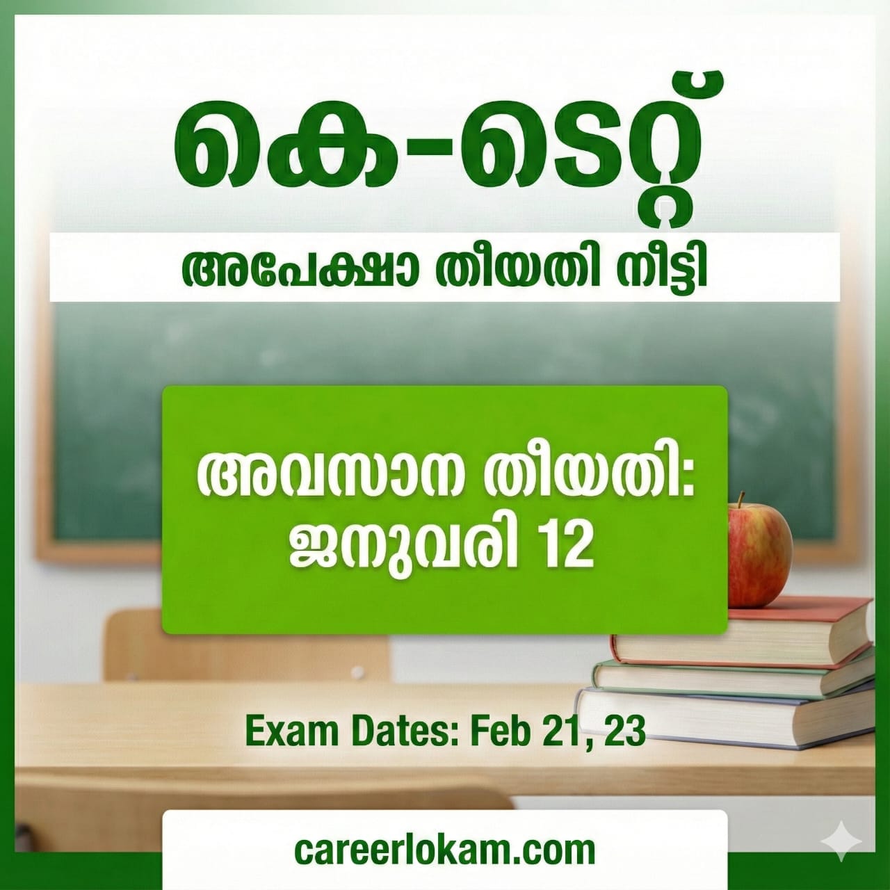 K-TET അപേക്ഷാ തീയതി വീണ്ടും നീട്ടി; ജനുവരി 12 വരെ അപേക്ഷിക്കാം; പരീക്ഷ ഫെബ്രുവരി 21, 23 തീയതികളിൽ