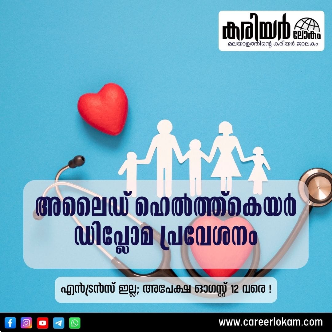 Read Moreകേരളത്തിലെ സർക്കാർ, സ്വാശ്രയ സ്ഥാപനങ്ങളിലെ ഫാർമസി, ഹെൽത്ത് ഇൻസ്പെക്ടർ, അലൈഡ് ഹെൽത്ത്കെയർ ഡിപ്ലോമ (പാരാമെഡിക്കൽ ഡിപ്ലോമ) പ്രോഗ്രാമുകളിലേക്കുള്ള പ്രവേശനത്തിന് ഓൺലൈൻ അപേക്ഷ ക്ഷണിച്ചു. ഈ കോഴ്സുകളിലേക്ക് എൻട്രൻസ് പരീക്ഷ ഉണ്ടായിരിക്കില്ല.