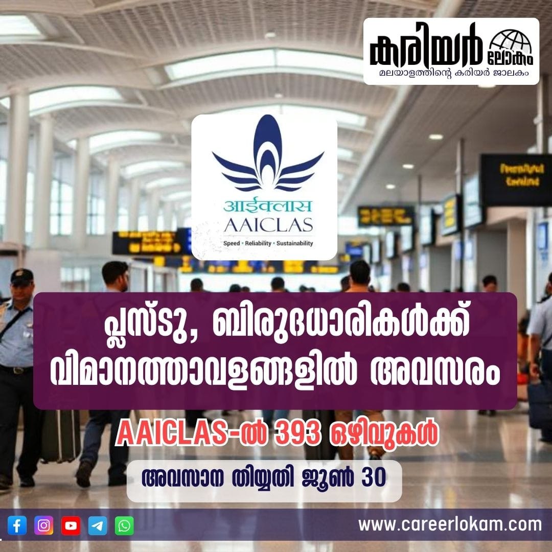 Read Moreഎയർപോർട്ട് കാർഗോ ലോജിസ്റ്റിക്സ് ആൻഡ് അലൈഡ് സർവീസസ് കമ്പനി ലിമിറ്റഡ് (AAICLAS) സെക്യൂരിറ്റി സ്ക്രീനർ, അസിസ്റ്റൻ്റ് തസ്തികകളിലേക്ക് 393 ഒഴിവുകളിലേക്ക് അപേക്ഷ ക്ഷണിച്ചു. പ്ലസ് ടു/ബിരുദം