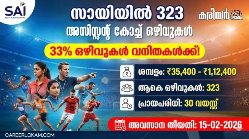 Read Moreസ്പോർട്സ് അതോറിറ്റി ഓഫ് ഇന്ത്യയിൽ (SAI) 323 അസിസ്റ്റന്റ് കോച്ച് ഒഴിവുകളിലേക്ക് അപേക്ഷ ക്ഷണിച്ചു. യോഗ്യത, ശമ്പളം, അപേക്ഷാ രീതി എന്നിവ വിശദമായി വായിക്കാം.