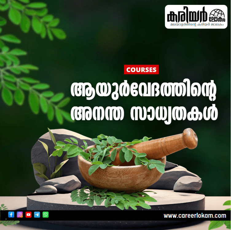 ആരോഗ്യ സംരക്ഷണത്തിന്റെ കാര്യത്തിൽ ആയുർവേദത്തിന് അതിന്റേതായ സ്ഥാനമുണ്ട്. പഠന സാധ്യതകൾ പരിഗണിച്ച് നോക്കിയാൽ, ആയുർവേദത്തിന്റെ ലോകം വളരെ വലുതാണ്. ആയുർവേദ രംഗത്തേക്ക് കടക്കാൻ ആഗ്രഹിക്കുന്നവർക്ക് സഹായകമാവുന്ന ചില വിവരങ്ങൾ