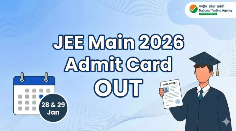 Read MoreJEE Main 2026 Session 1 admit cards for January 28 & 29 exams are out. Download your Hall Ticket from jeemain.nta.nic.in. Check exam schedule and guidelines here.