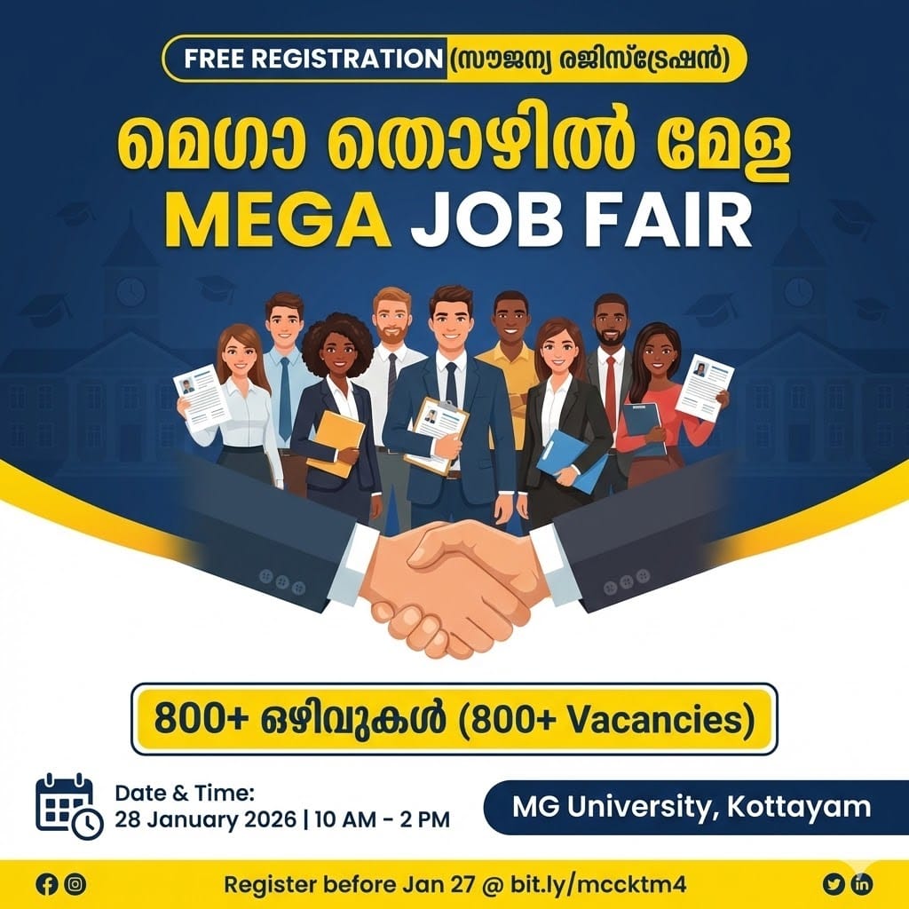 Read Moreകേരളത്തിലെ സർക്കാർ, അർദ്ധസർക്കാർ, സ്വകാര്യ സ്ഥാപനങ്ങളിൽ നിരവധി തൊഴിലവസരങ്ങൾ റിപ്പോർട്ട് ചെയ്തിരിക്കുന്നു. ഫാക്ട് (FACT), കേരള ബാങ്ക്, കൊച്ചിൻ പോർട്ട് തുടങ്ങിയ വൻകിട സ്ഥാപനങ്ങൾ മുതൽ ഹോട്ടലുകൾ,