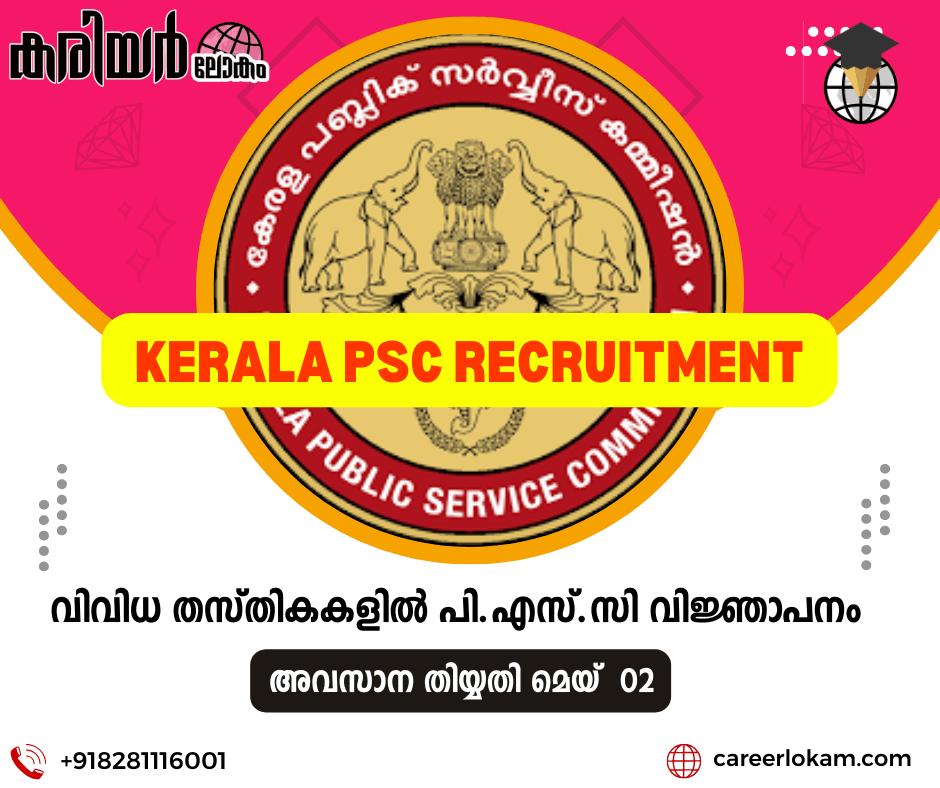 Read Moreകേരള പിഎസ്സി വിവിധ വകുപ്പുകളിലേക്കുള്ള ഏറ്റവും പുതിയ തൊഴിൽ വിജ്ഞാപനം പ്രസിദ്ധീകരിച്ചു. കേരള സർക്കാർ ജോലി അന്വേഷിക്കുന്ന ഉദ്യോഗാർത്ഥികൾക്ക് ഇത് ഒരു മികച്ച അവസരമാണ്. അസിസ്റ്റൻ്റ് പ്രൊഫസർ,