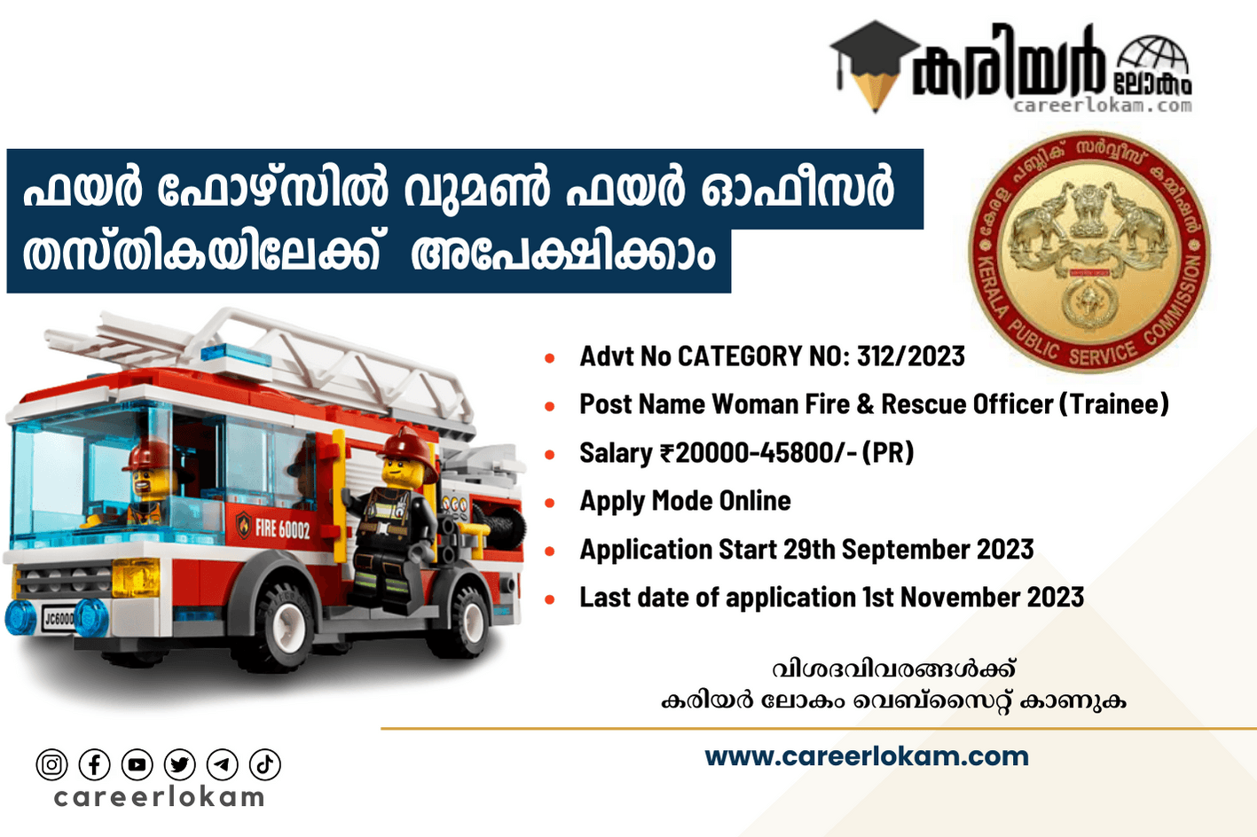 Read Moreകേരള സർക്കാരിന്റെ ഫയർ ഫോഴ്സിൽ വുമൺ ഫയർ ഓഫീസർ തസ്തികയിലേക്ക് ഒഴിവുകളിലേക്ക് അപേക്ഷ ക്ഷണിച്ചു. പ്ലസ്ടു യോഗ്യത ഉള്ളവർക്ക് ഈ തസ്തികയിലേക്ക് അപേക്ഷിക്കാം. താൽപ്പര്യമുള്ള ഉദ്യോഗാർത്ഥികൾക്ക് 2023