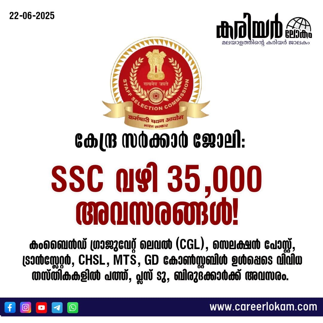 പ്ലസ്ടു കഴിഞവർക്ക് 7565 കോൺസ്റ്റബിൾ ഒഴിവുകളിലേക്ക് SSC വിജ്ഞാപനം ; ഒക്ടോബർ 31 വരെ അപേക്ഷിക്കാം.