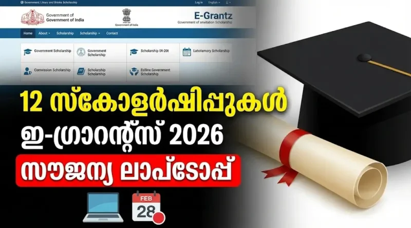 Apply Now: 12 സ്കോളർഷിപ്പുകൾ | E-Grantz Scholarship 2026 Kerala | Laptop & Post Matric