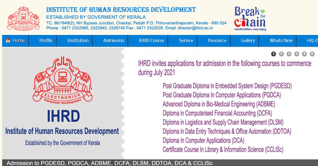 IHRD വിവിധ കോഴ്സുകളിലേക്ക് അപേക്ഷ ക്ഷണിച്ചു