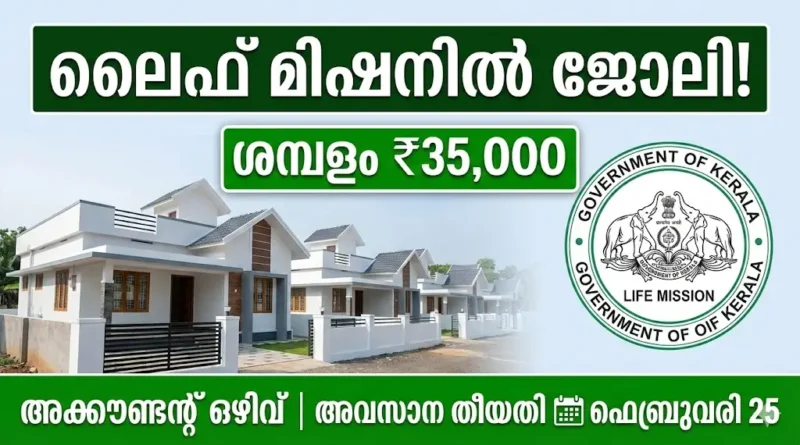 ലൈഫ് മിഷനിൽ അക്കൗണ്ടന്റ് ആകാം! ശമ്പളം 35,000 രൂപ | Kerala Life Mission Accountant Recruitment 2026