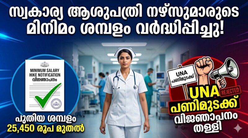 നഴ്സുമാരുടെ മിനിമം ശമ്പളം കൂട്ടി: വിജ്ഞാപനം തള്ളി, പണിമുടക്കുമായി UNA | Kerala Nurses Minimum Salary 2026