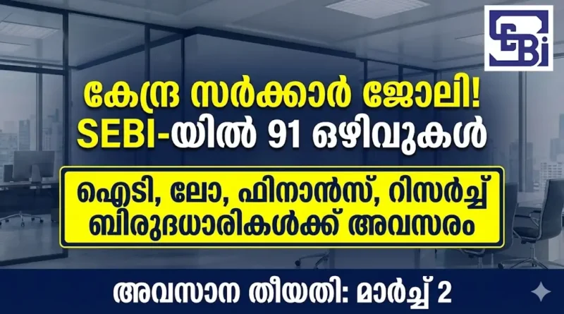 ഇന്ത്യൻ സാമ്പത്തിക മേഖലയിലെ ഏറ്റവും ശക്തമായ സ്ഥാപനത്തിൽ ജോലി ചെയ്യാൻ ഫിനാൻസ്, ഐടി, നിയമ ബിരുദധാരികൾക്ക് ലഭിക്കുന്ന ഒരു വലിയ അംഗീകാരമാണ് ഈ SEBI Young Professional Program 2026. വെറും ഒരു വർഷത്തെ പ്രവൃത്തിപരിചയം മാത്രമുള്ള യുവതലമുറയ്ക്കാണ് ഈ അവസരം നൽകുന്നത് എന്നത് വലിയൊരു കാര്യമാണ്. ഉയർന്ന ശമ്പളവും മികച്ച കരിയർ വളർച്ചയും നൽകുന്ന ഈ പ്രോഗ്രാമിലേക്ക് യോഗ്യതയുള്ള എല്ലാവരും മാർച്ച് 2 ന് മുൻപായി തന്നെ അപേക്ഷ സമർപ്പിക്കാൻ പ്രത്യേകം ശ്രദ്ധിക്കുക. ഇതുപോലുള്ള കൂടുതൽ തൊഴിൽ വാർത്തകളും കരിയർ അപ്ഡേറ്റുകളും വേഗത്തിൽ അറിയുന്നതിനായി ഞങ്ങളുടെ Career Lokam Home Page എപ്പോഴും സന്ദർശിക്കുന്നത് ശീലമാക്കുക.